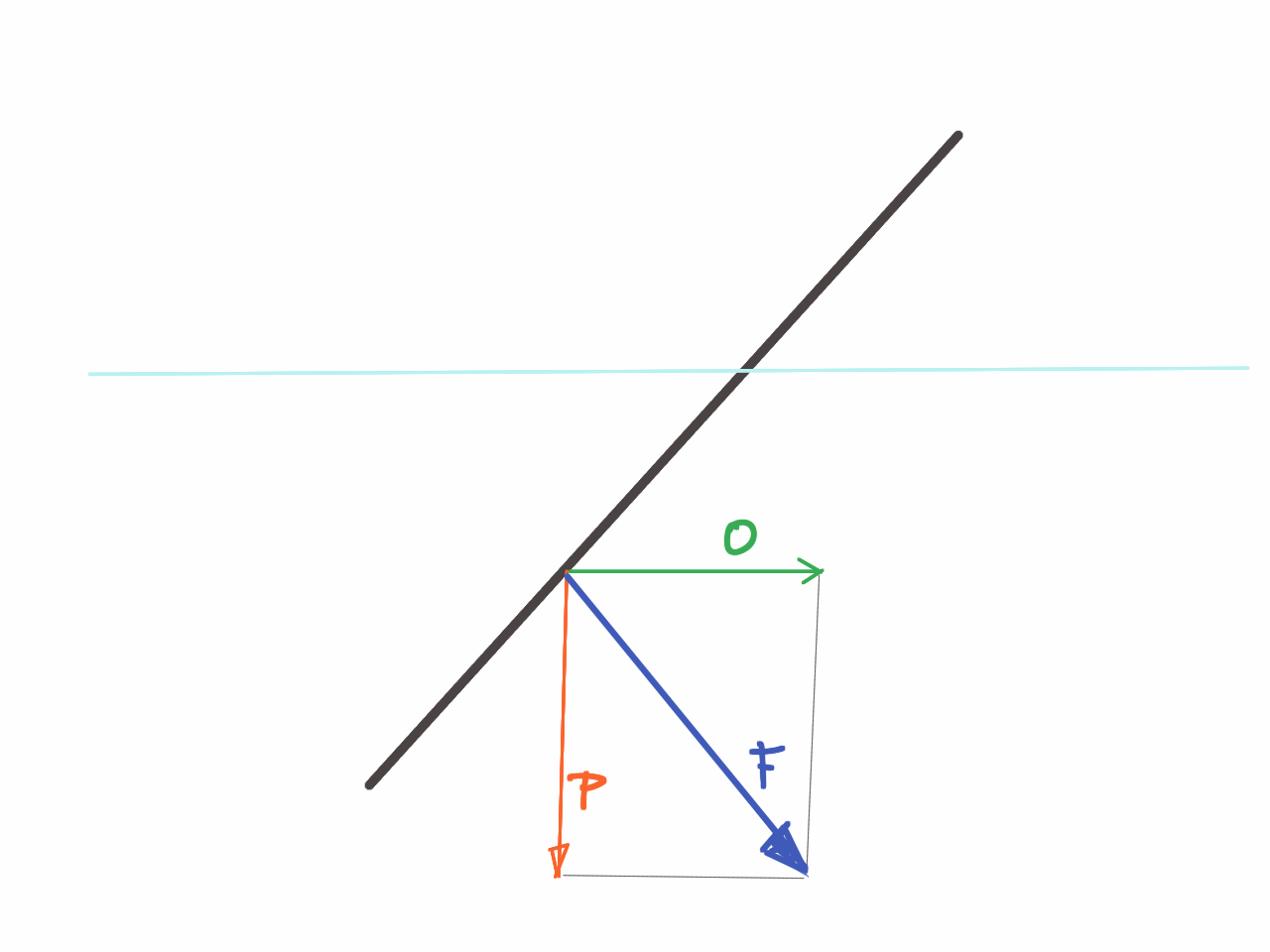 Applicando all'inserimento in acqua una forza F lungo una direzione non orizzontale otterremo un componente P verso il basso capace di sostenere il nostro baricentro e una componente O orizzontale che sarà un po' più grande della sola F applicata esclusivamente sul piano orizzontale.